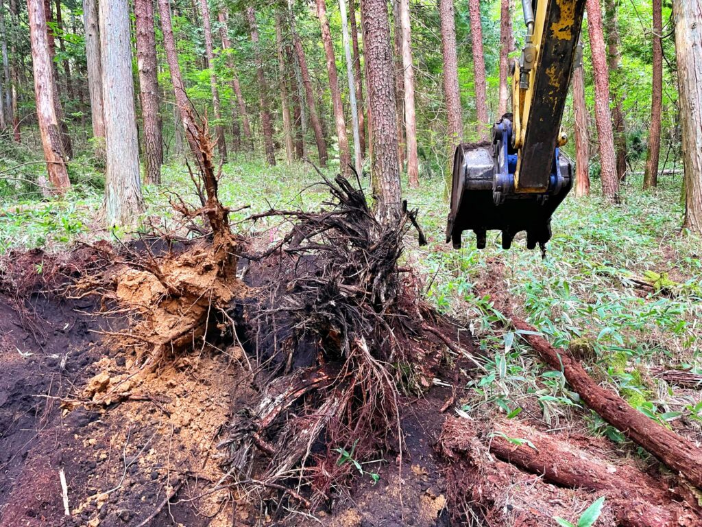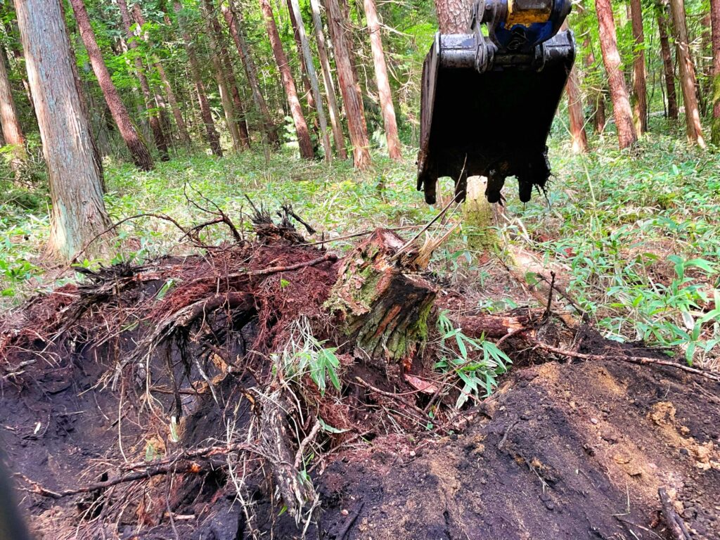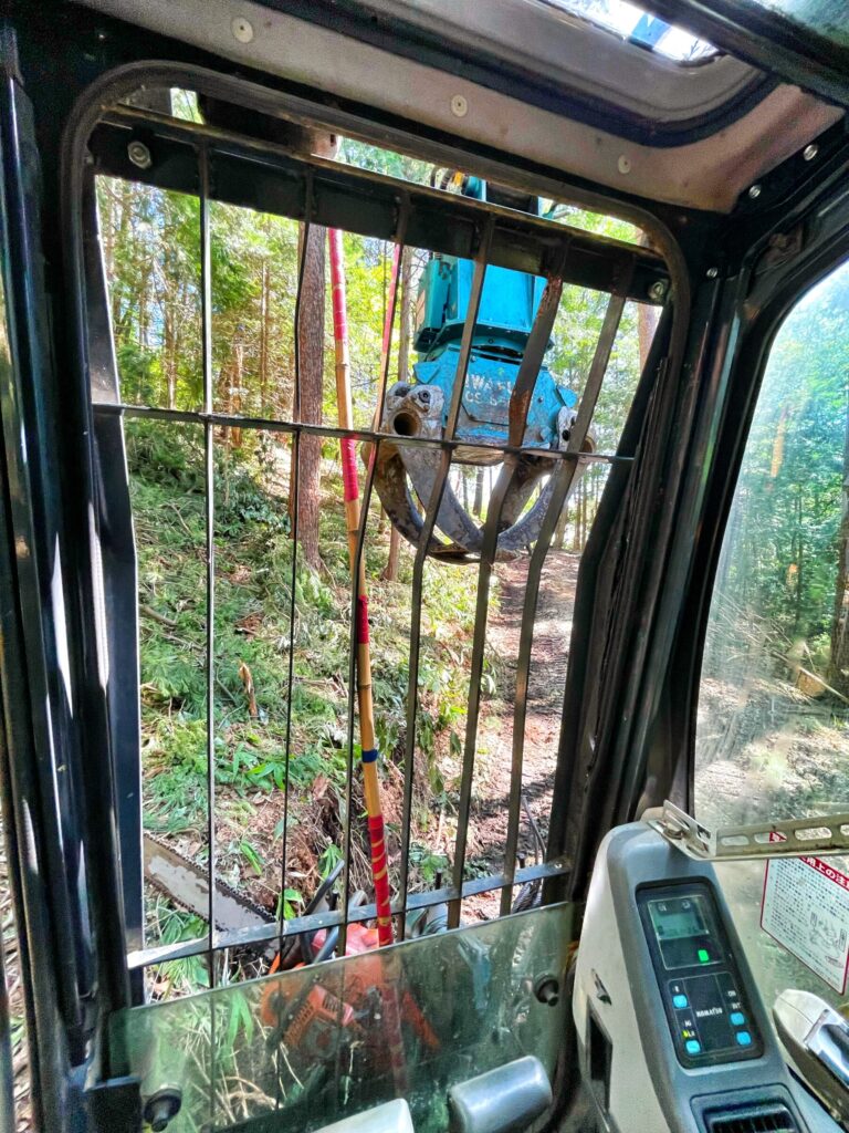 7月からお仕事復帰してるけど、まだ枝や倒木が横たわる山の中はガシガシ歩けないのでグラップルのオペレーターや枝払い造材や道作りのポジションでお仕事させてもらってます。