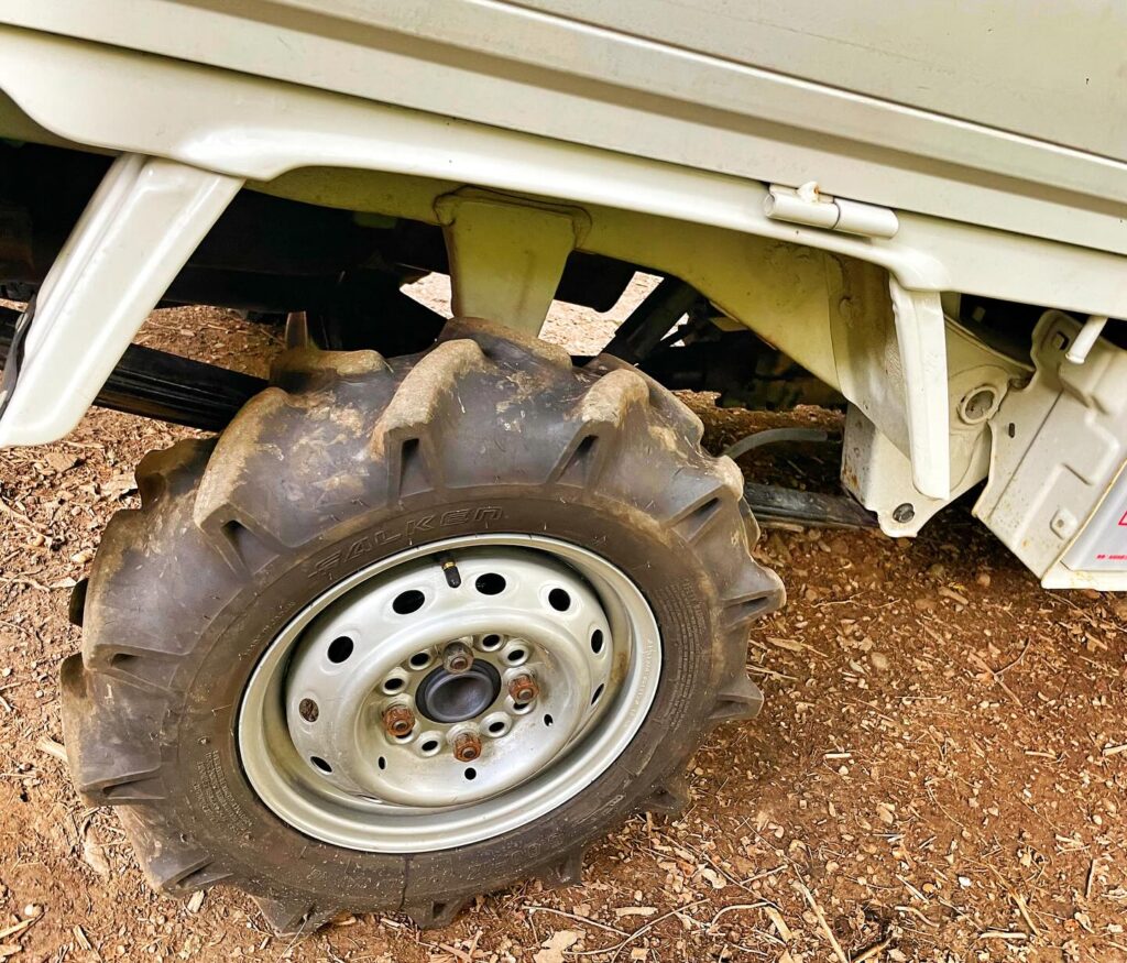 山仕様と言ってもハイリフト、アンダーガード、トラクタータイヤ装着くらいです。
